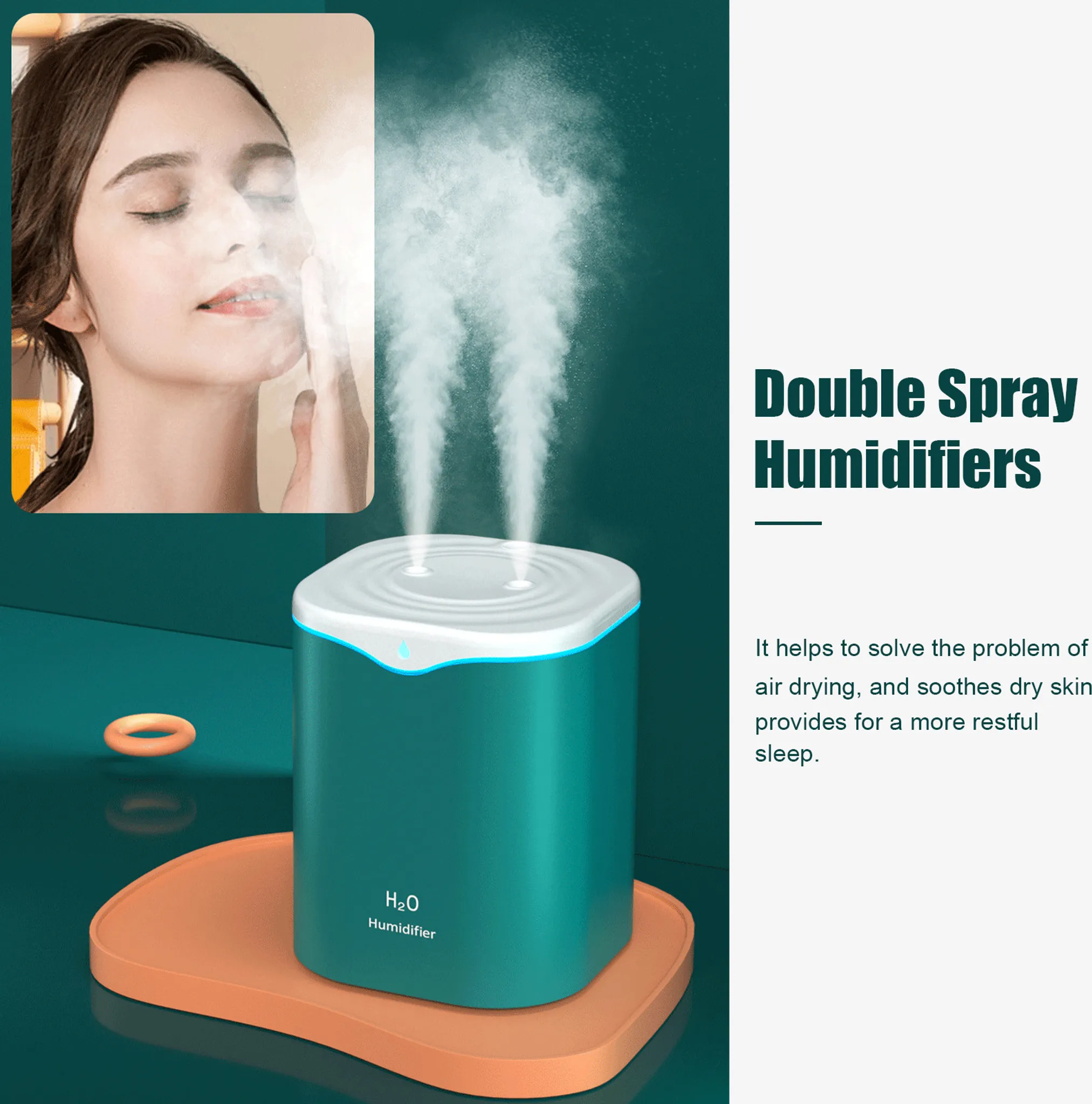 2L Doppelspray-Luftbefeuchter mit LED-Licht & Auto Shut-Off – Cool Mist für Schlafzimmer & Büro