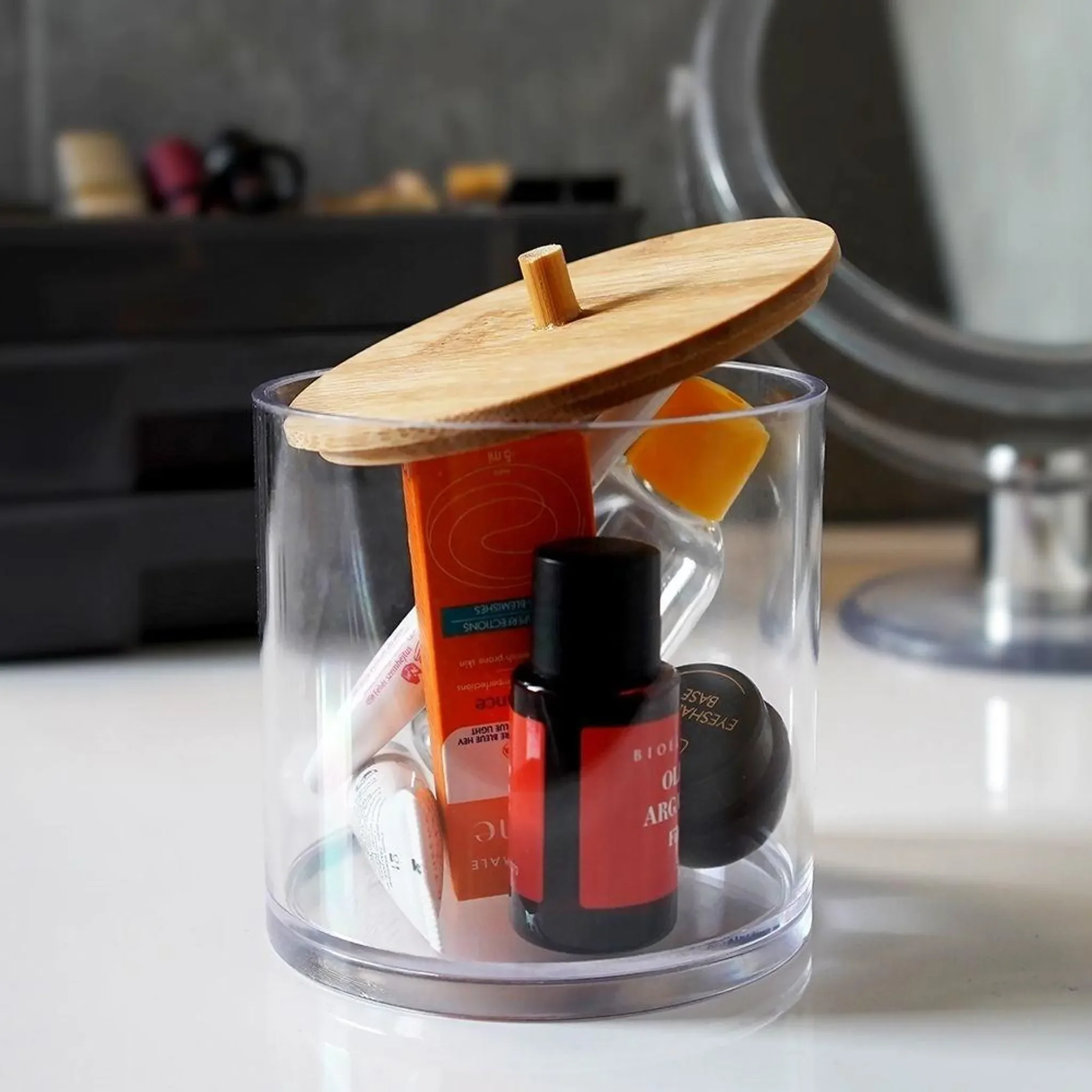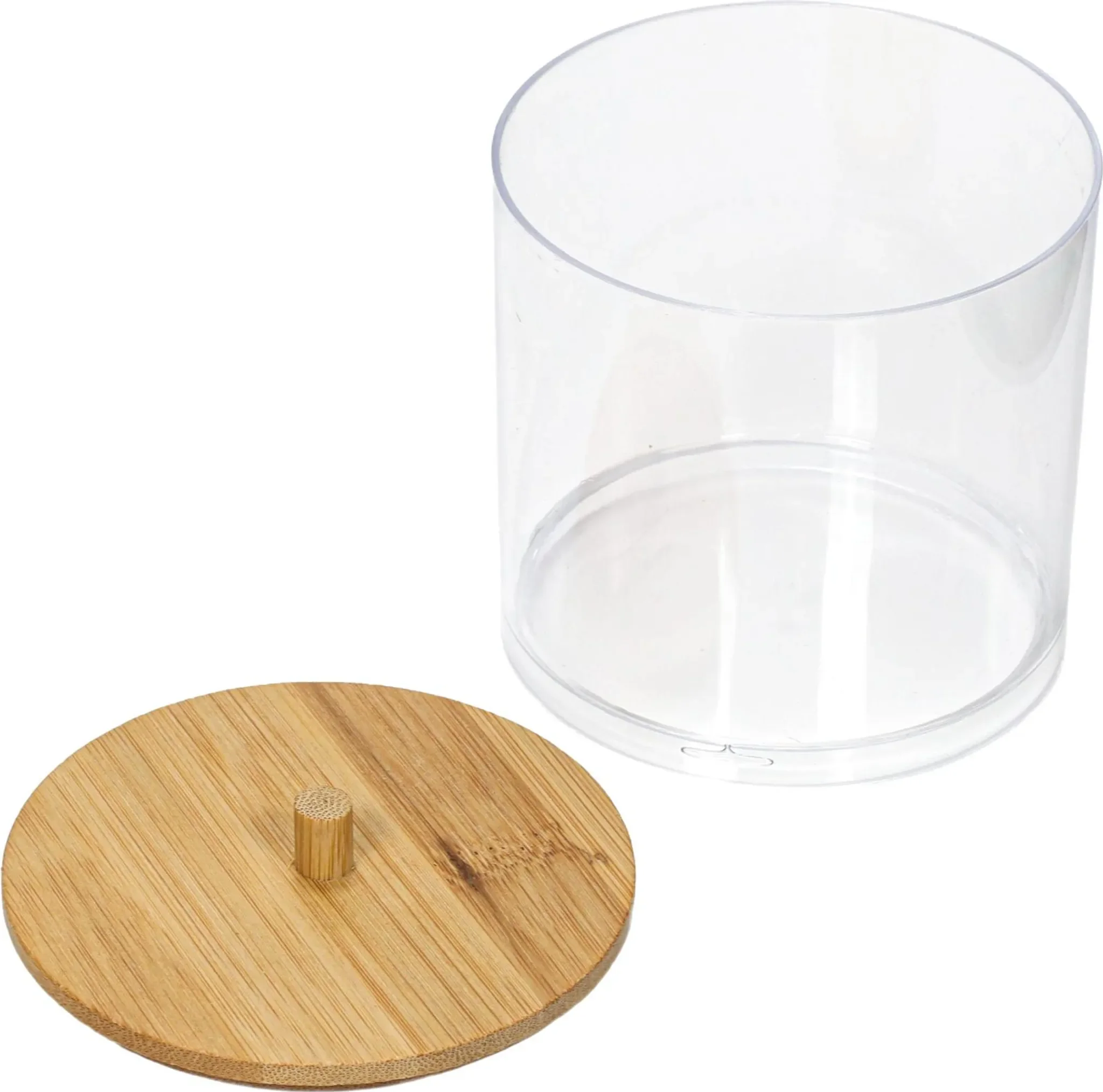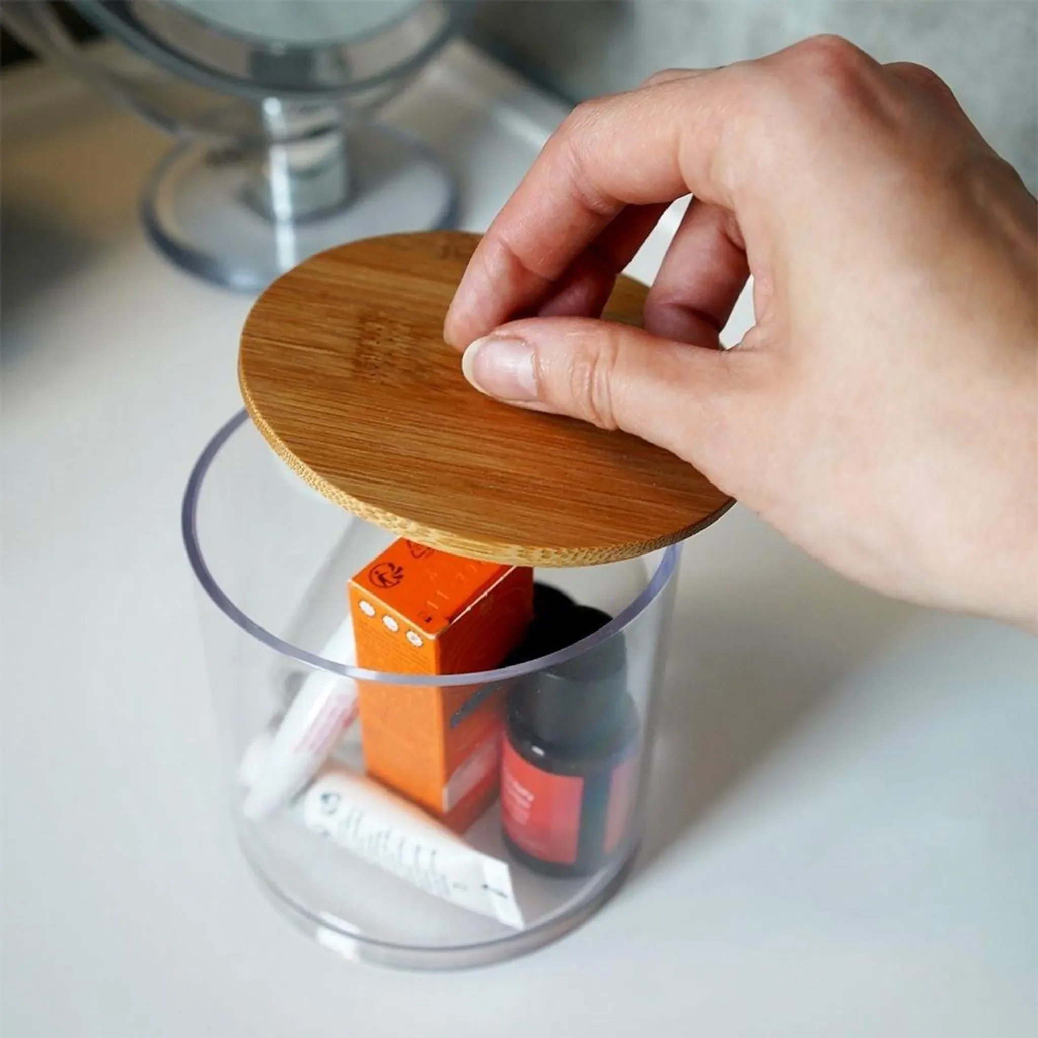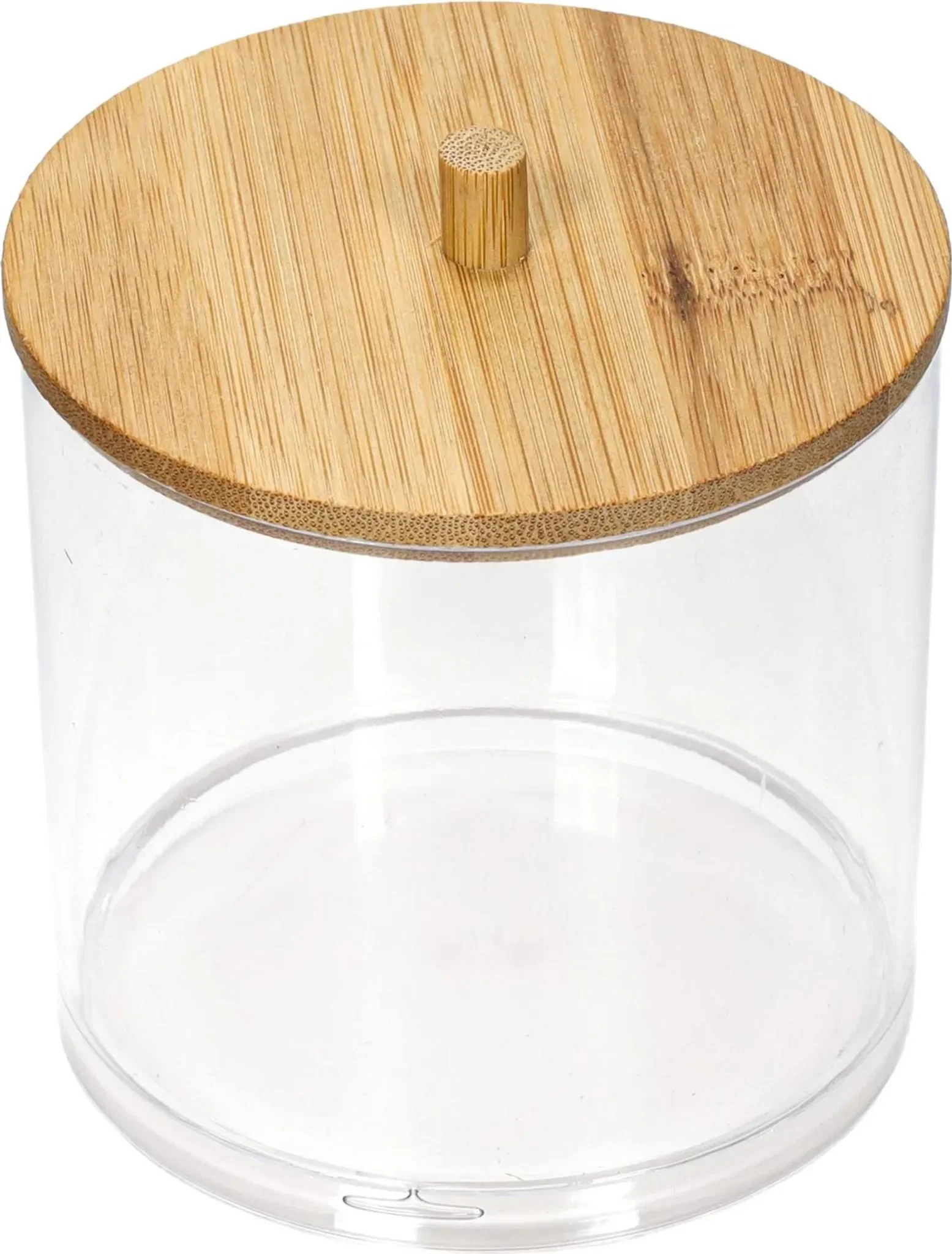 Aufbewahrungsbox für Make-up & Wattepads mit Bambusdeckel – Transparent, 10,5×10,5×10 cm