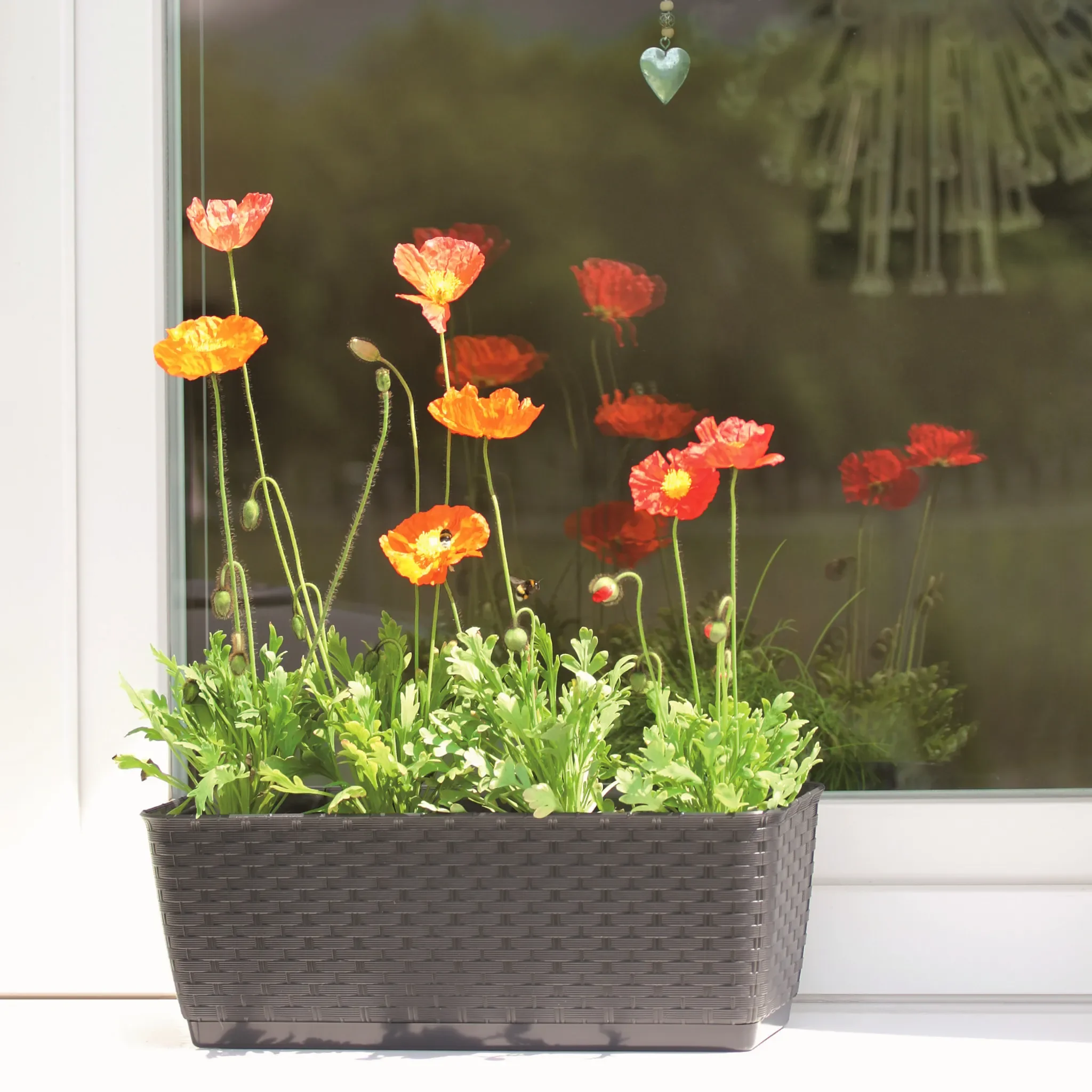 Highlights: Rattan-Optik, integriertes Bewässerungssystem, UV-beständig, ideal für Balkongeländer, robust und pflegeleicht.