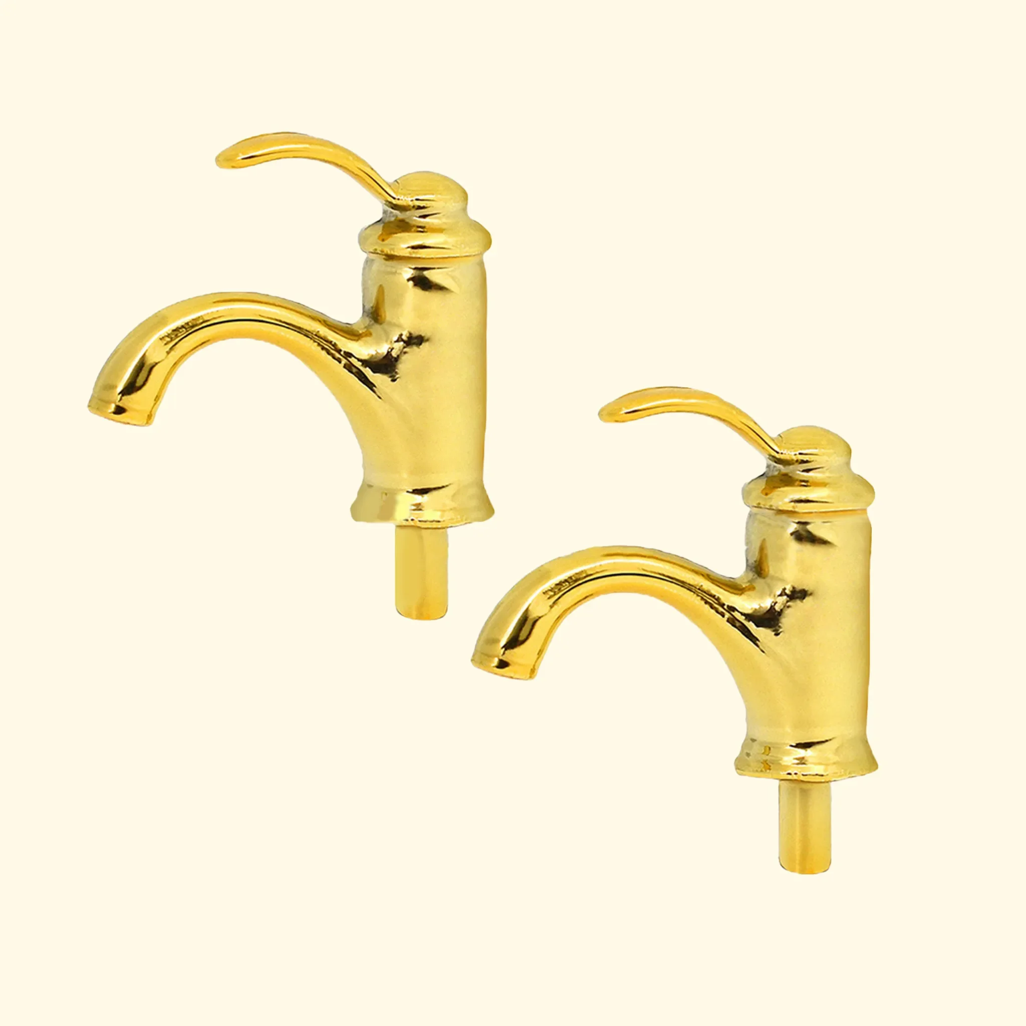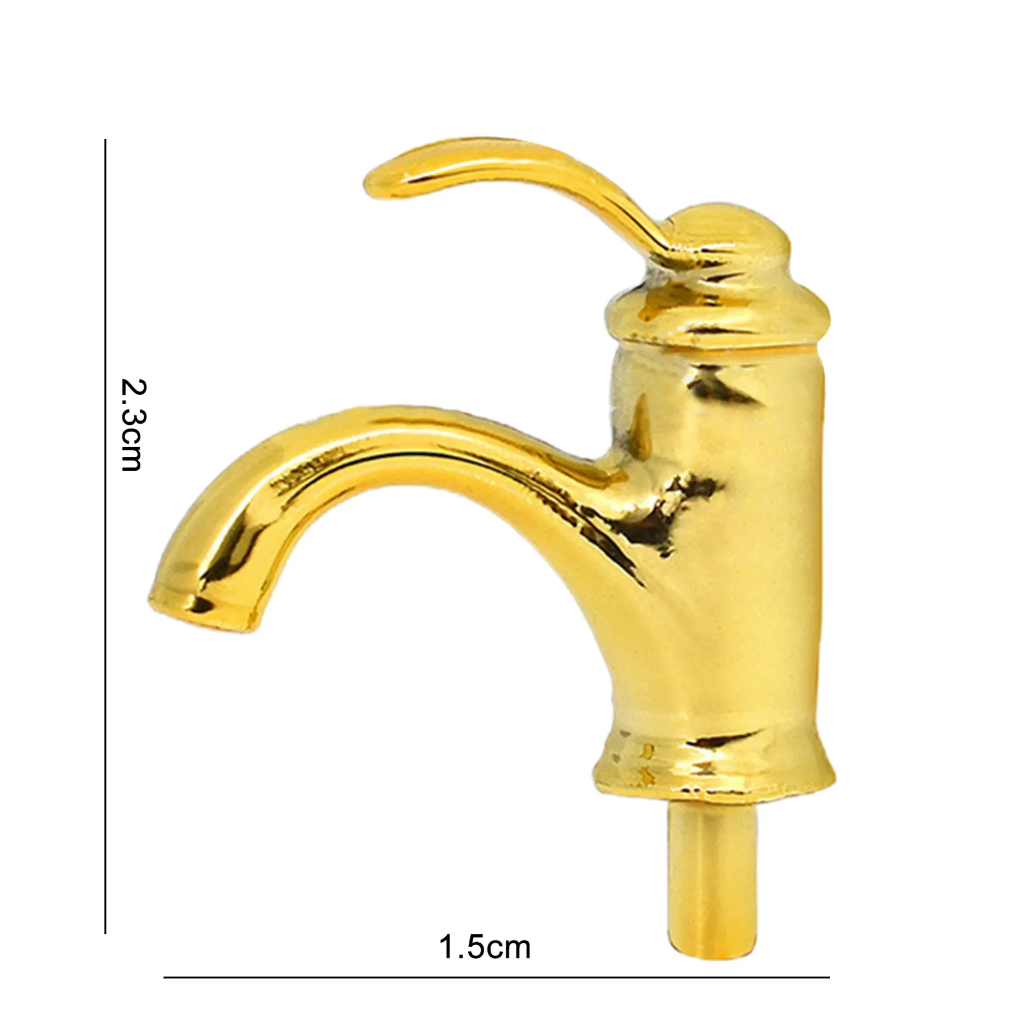 Highlights: Miniatur-Wasserhahn aus Kunststoff in Goldoptik – fein gearbeitet, realistisch gestaltet und ideal für detailgetreue Puppenhaus-Szenen oder DIY-Projekte.