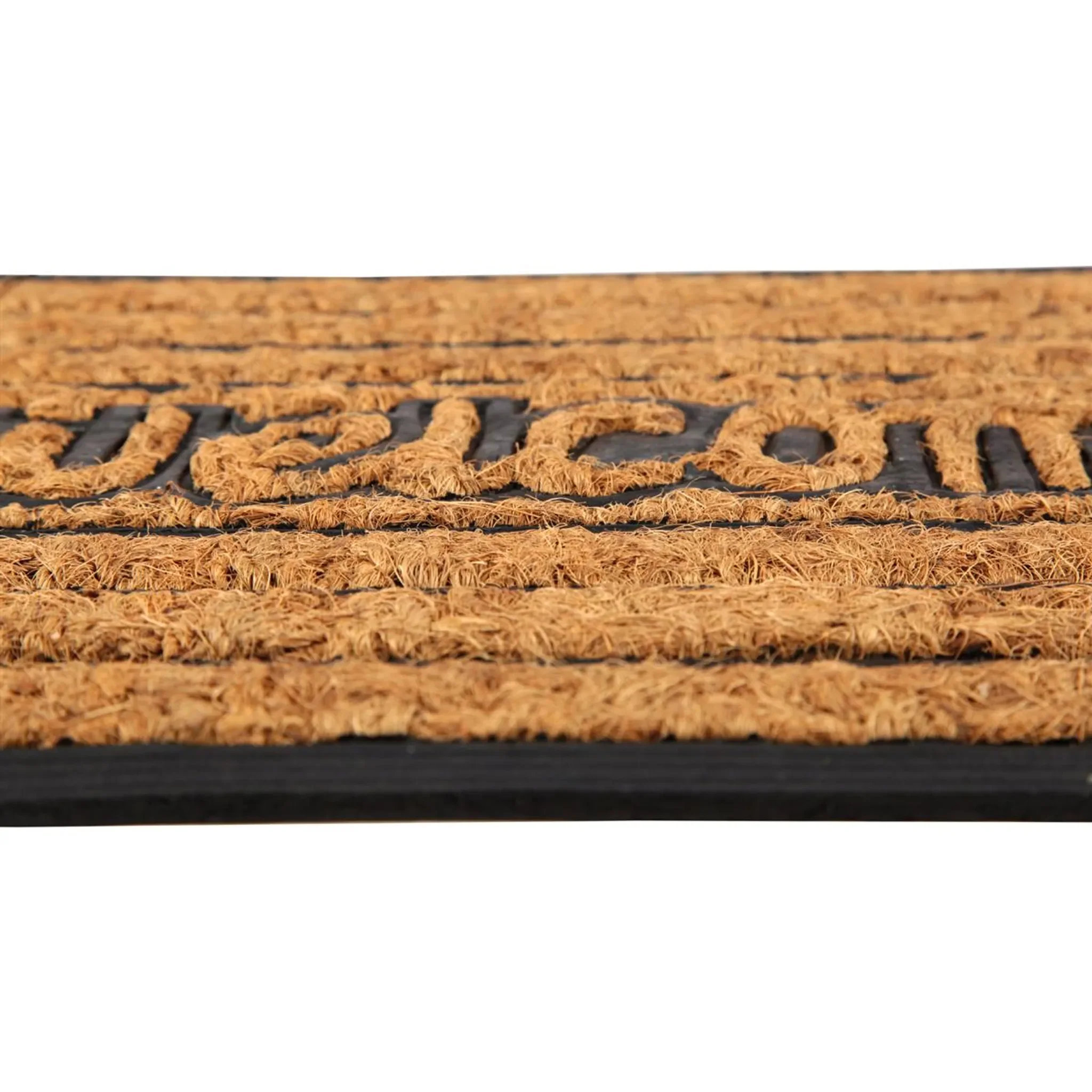 Highlights: Robuste Kokosfasern für hohe Schmutzaufnahme, rutschfeste Gummirückseite, UV- und Wetterbeständig, „Welcome“-Design für einen freundlichen Eingangsbereich.