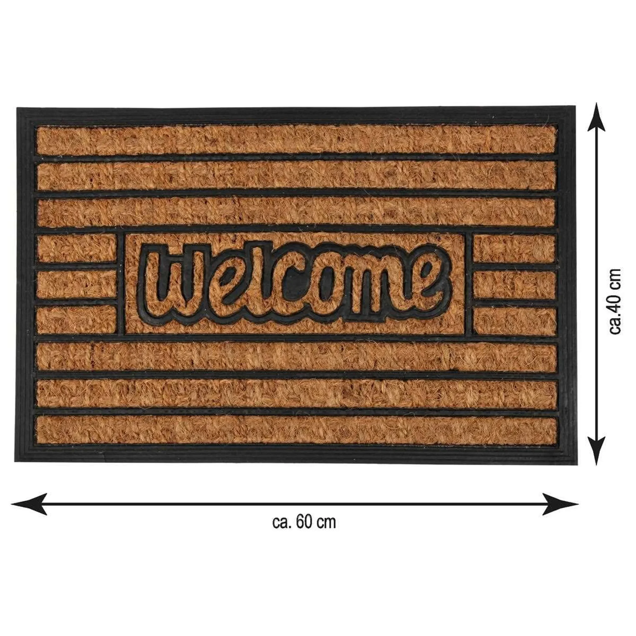 | Im Paket | 1 × Fußmatte aus Kokos und Gummi, Design: "Welcome Stripes", 40 × 60 cm |