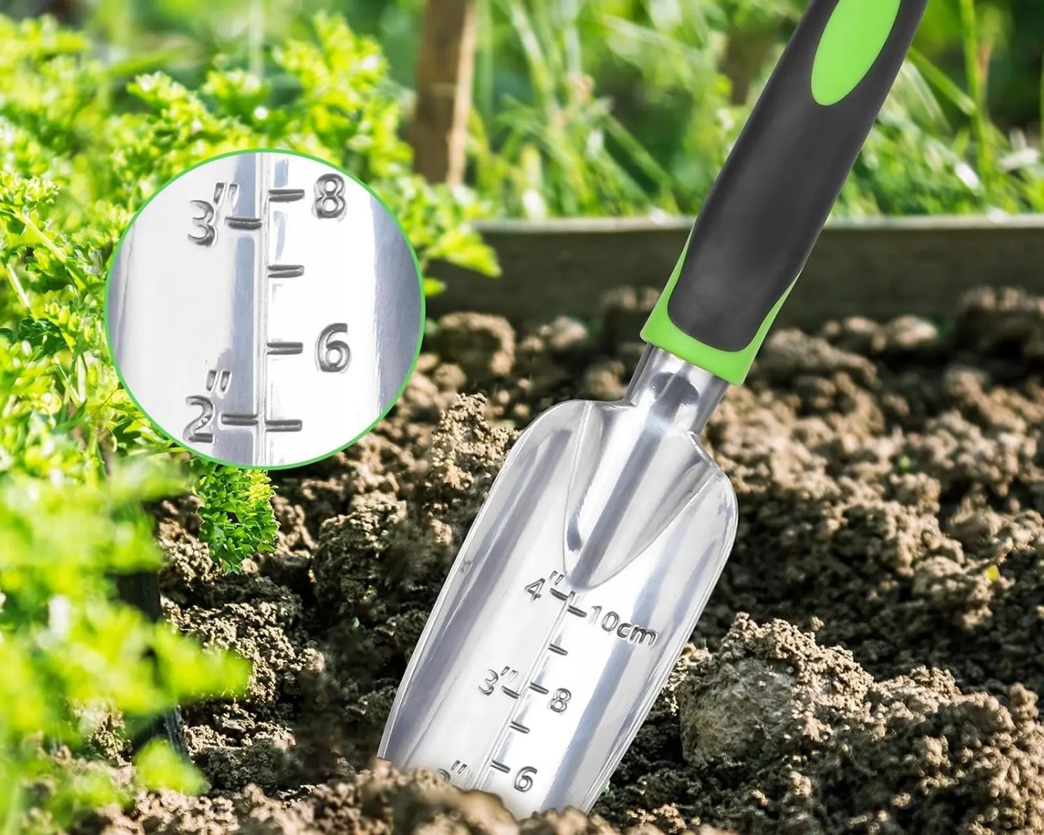 Highlights: Ergonomische Griffe, integrierte Messskala, robuste Aluminiumlegierung, rostfrei, mit Aufhängemöglichkeit – ideal für alle Gartenarbeiten.