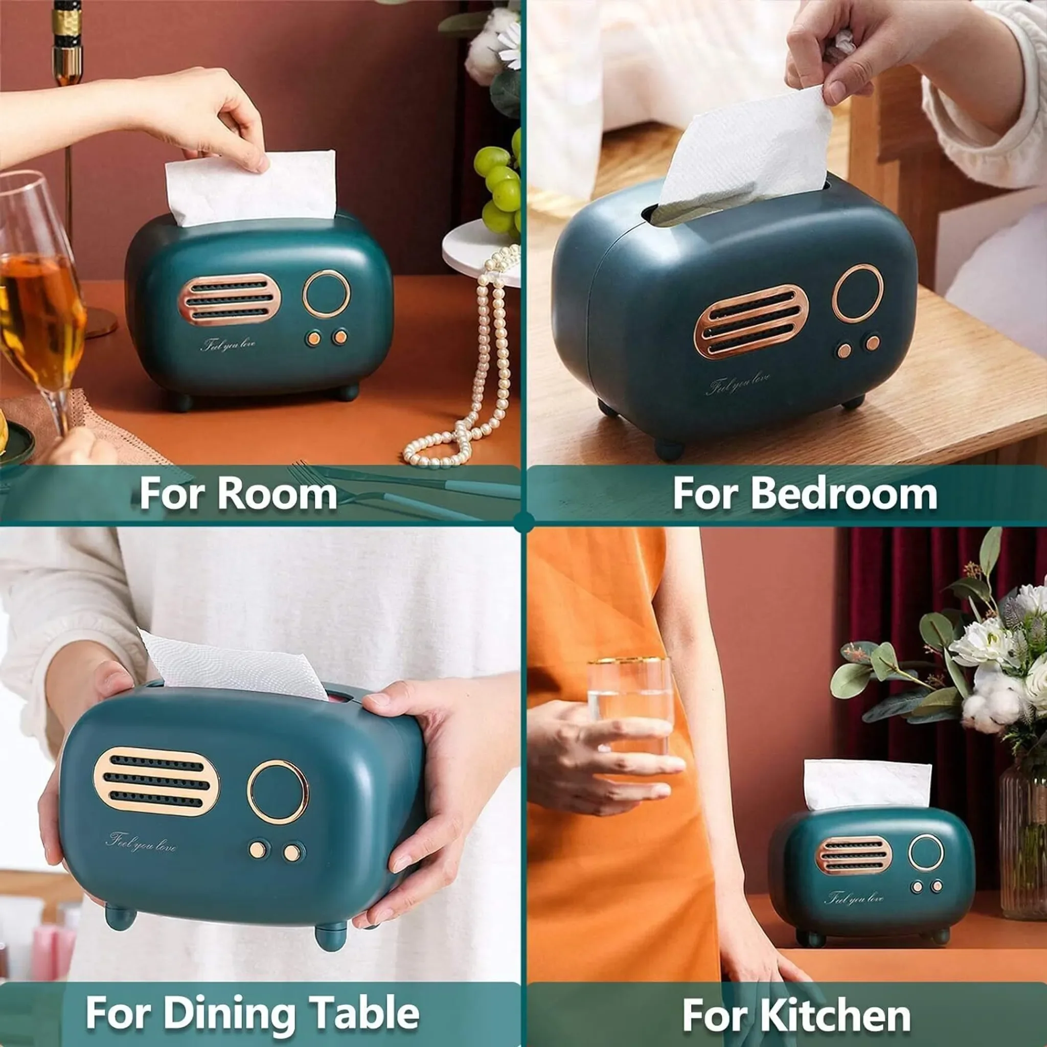 Gesichtstuch-Boxhalter im Retro-Radio-Design – Grün, multifunktional & dekorativ