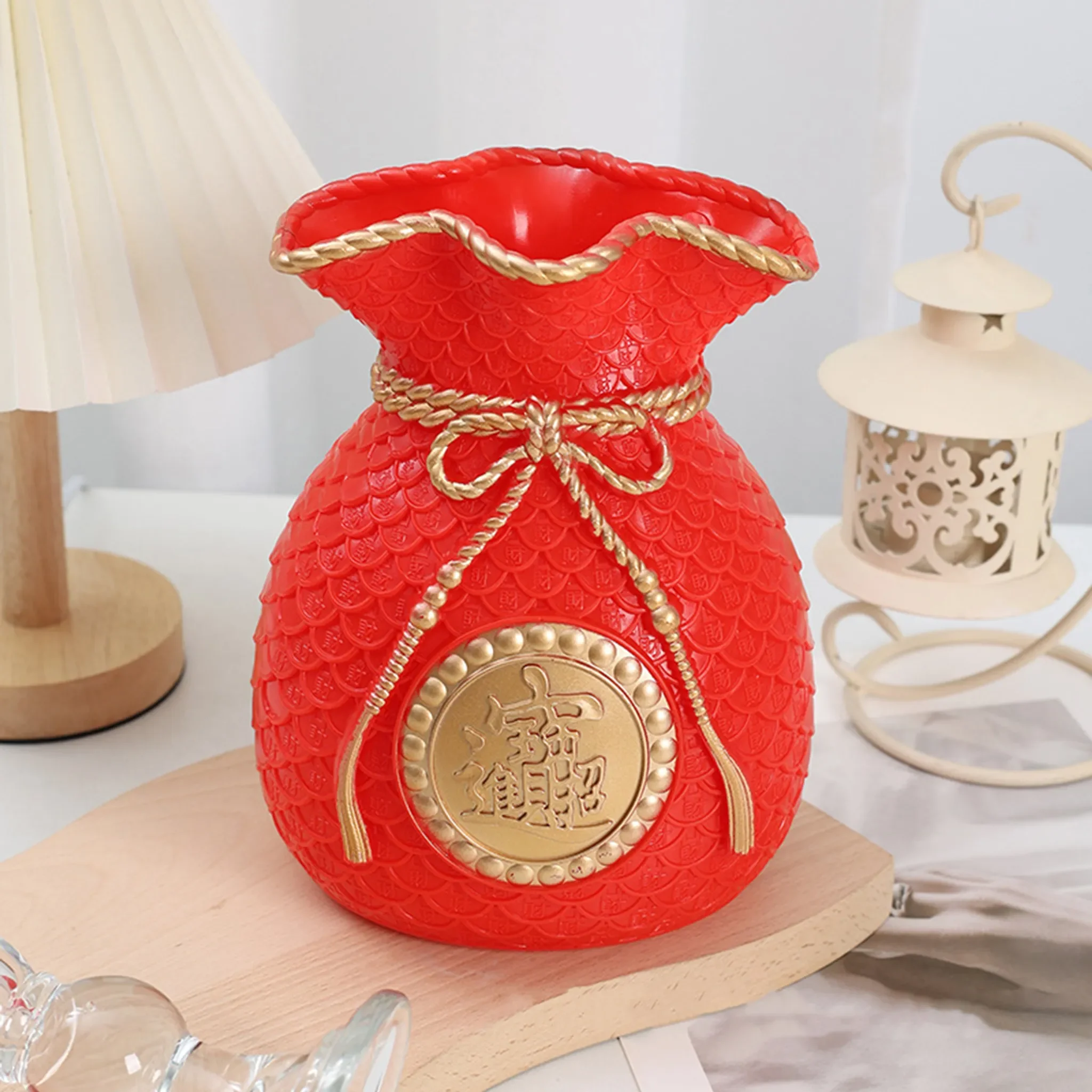 Glücksbeutel-Vase – Reichtumsbeutel-Dekoration in Rot & Gold