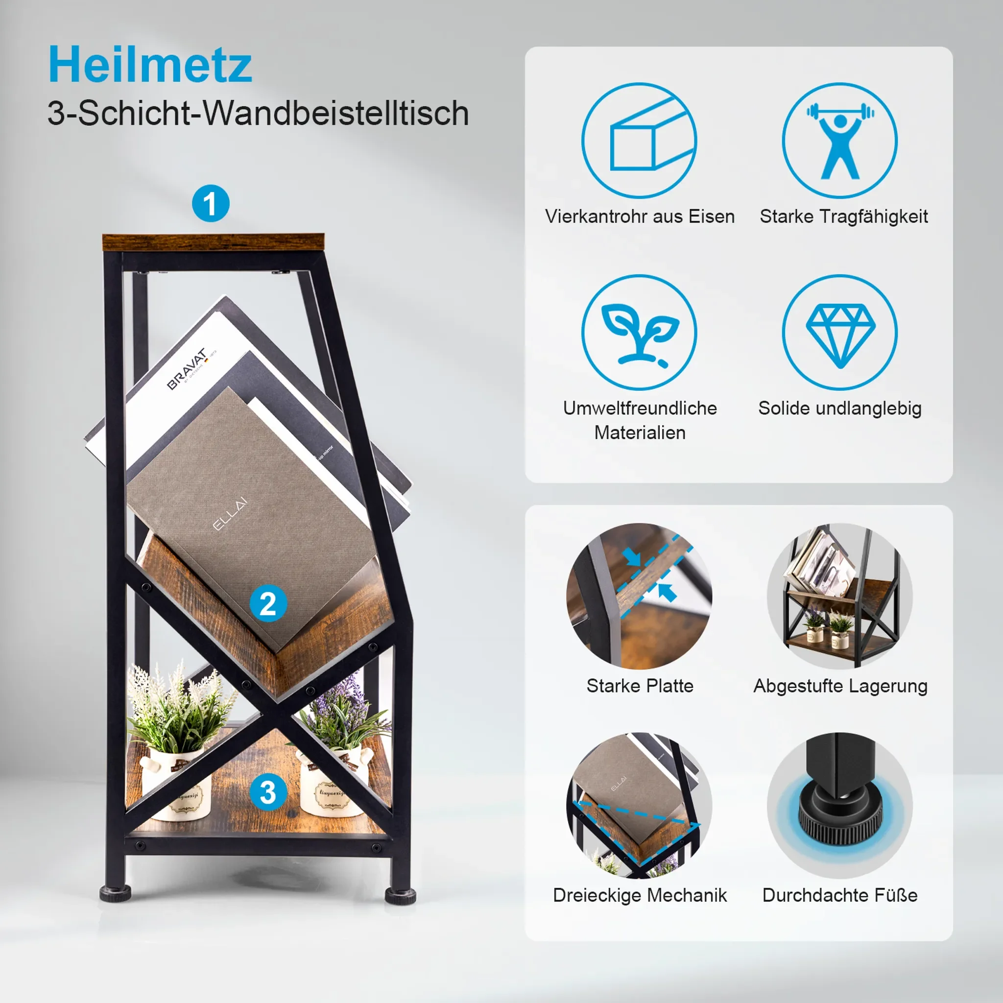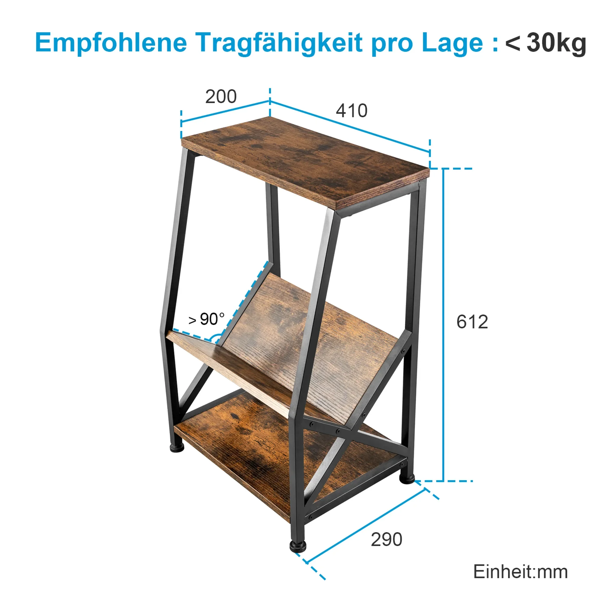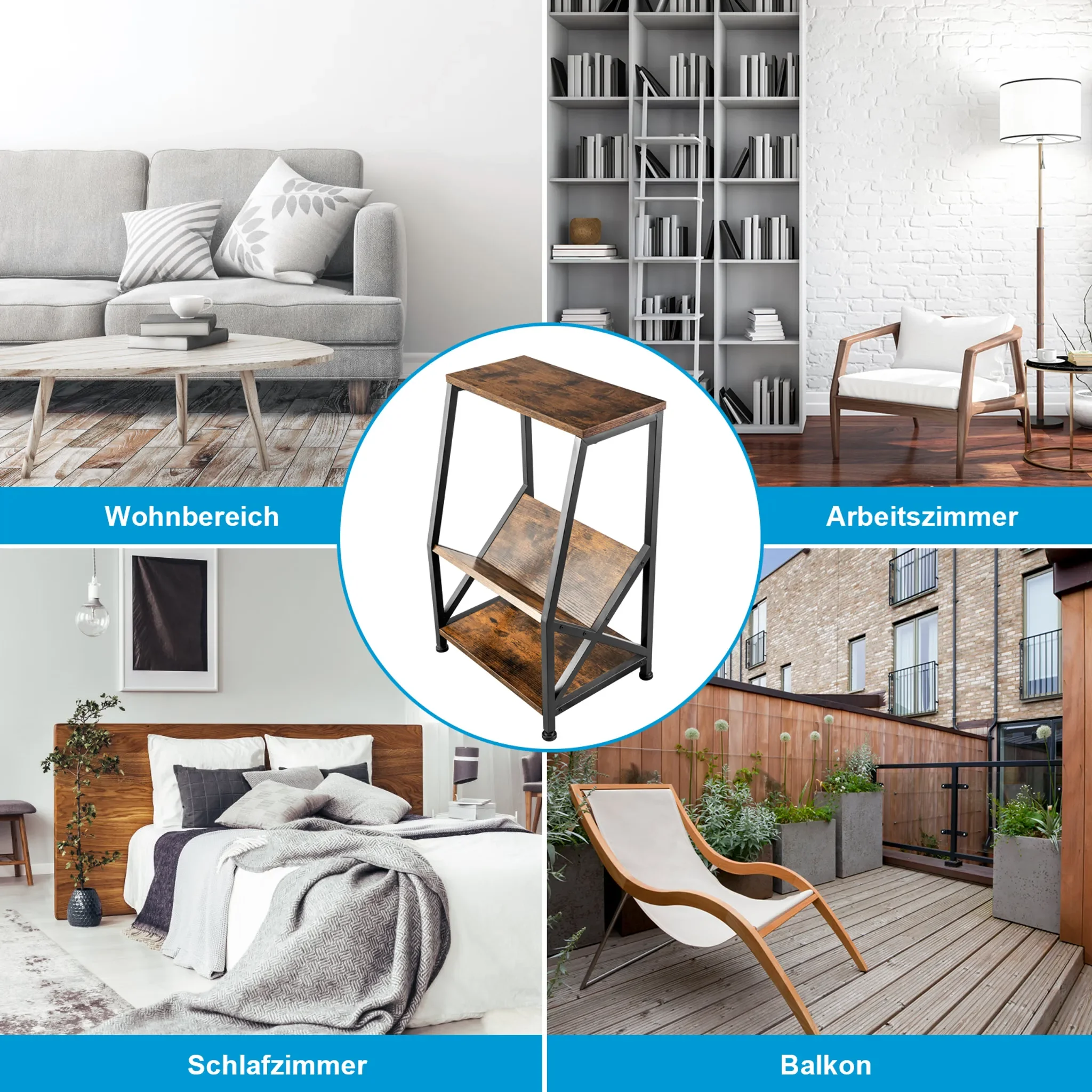 3 Ablageebenen • Robustes Metallgestell • Holzplatte in Vintage-Optik