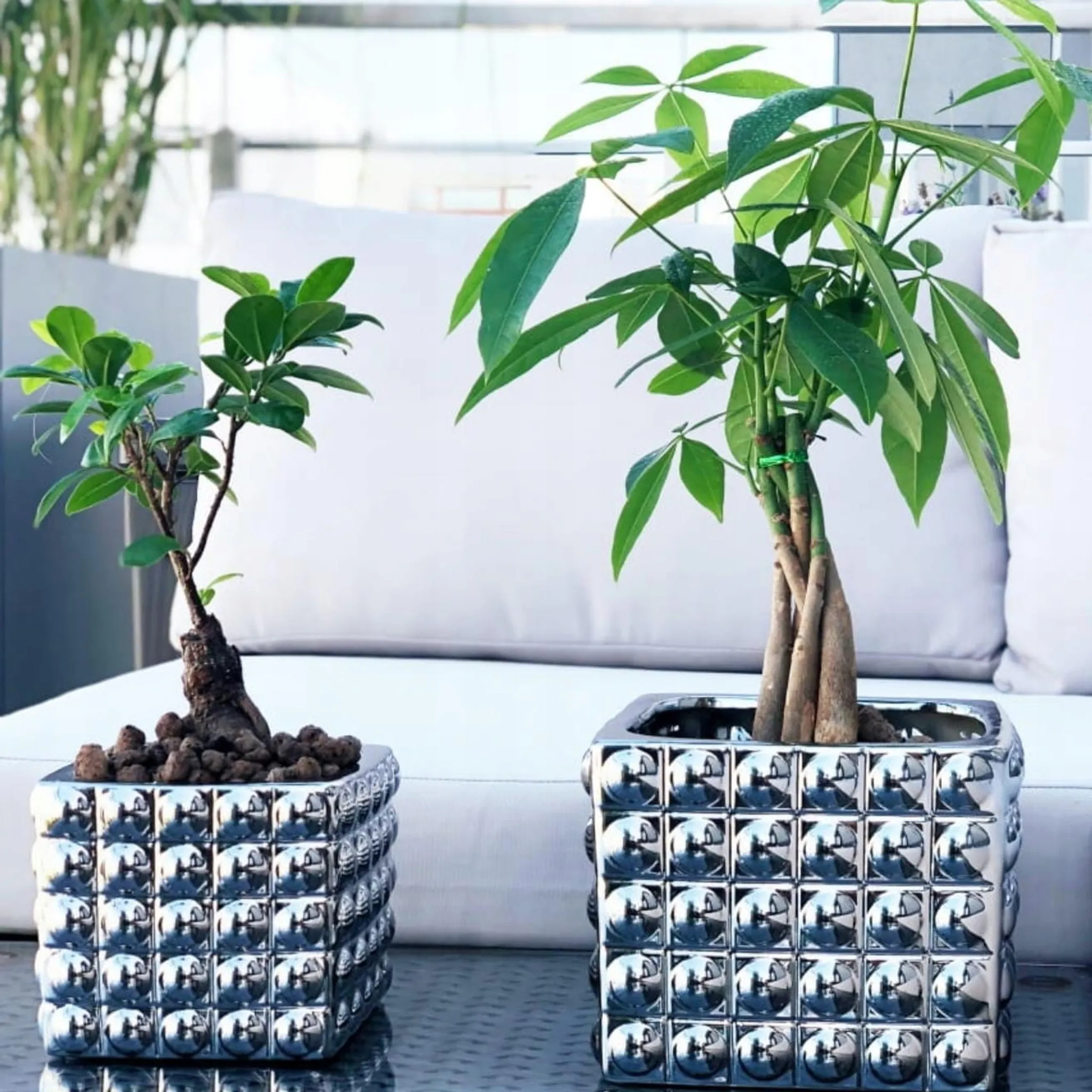 Keramik Blumentopf silber – quadratisch 14 cm