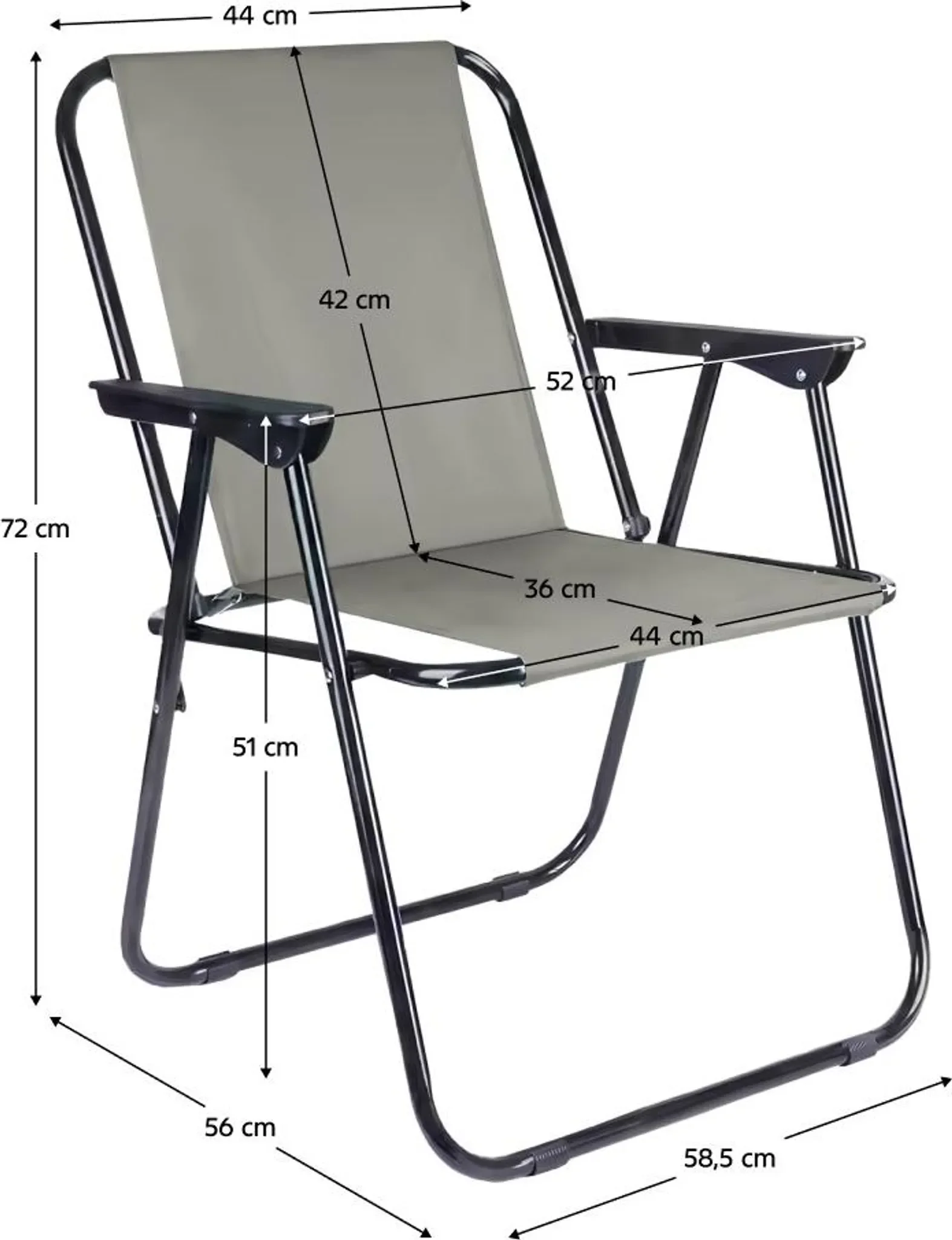 Der Sitz ist mit komfortablen Kunststoff-Armlehnen ausgestattet, die zusätzliche Unterstützung bieten. Das moderne Design in Hellgrau und Schwarz fügt sich harmonisch in jede Outdoor-Umgebung ein. Mit einer maximalen Tragfähigkeit von 100 kg ist der Klappstuhl robust und zuverlässig – perfekt für entspannte Stunden in der Natur.
