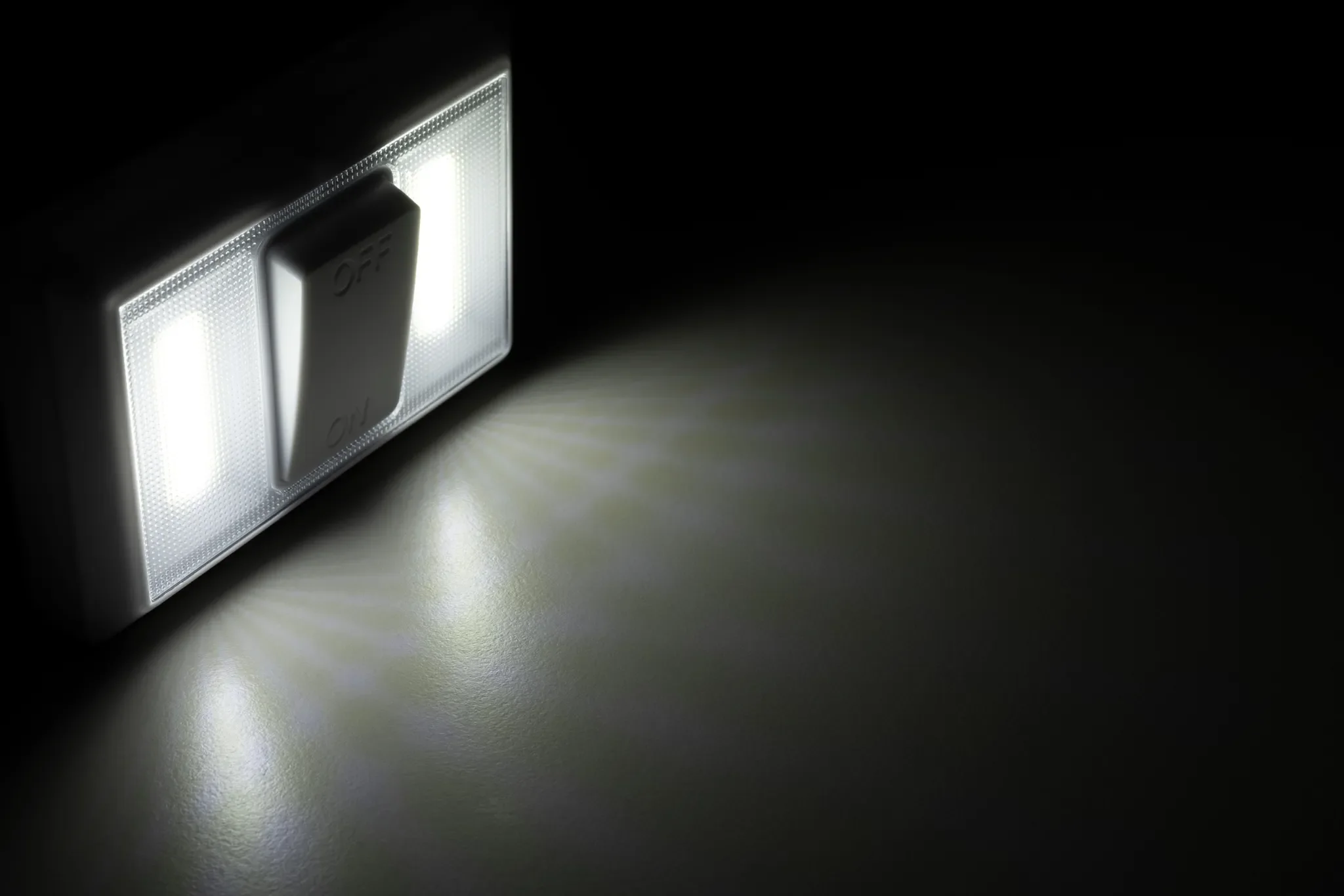 Die LED-Klebeleuchte McShine „LK2-COB“ ist die ideale Lösung für Bereiche ohne Netzstrom. Sie wird mit vier Micro-Batterien (AAA) betrieben und ist dadurch vollkommen mobil einsetzbar – perfekt für Schränke, Abstellräume, Camping oder als einfache Notbeleuchtung.