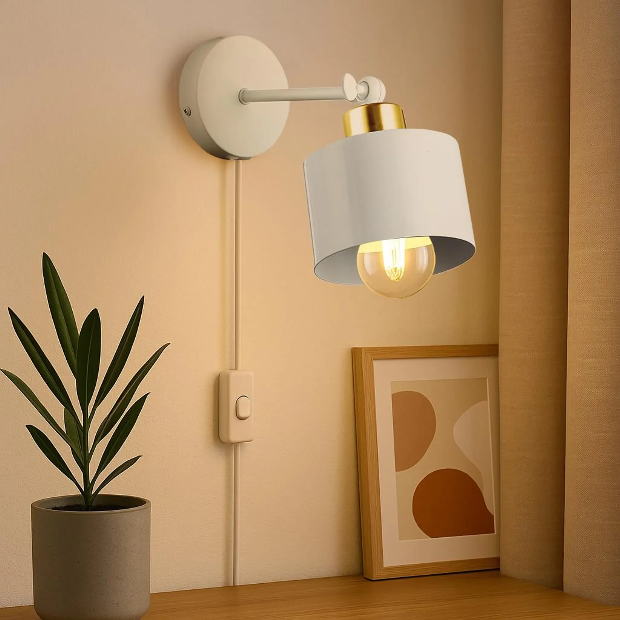 MasterLED Wandleuchte Elza E27 – Weiß & Gold, verstellbar, mit Stecker & Schalter