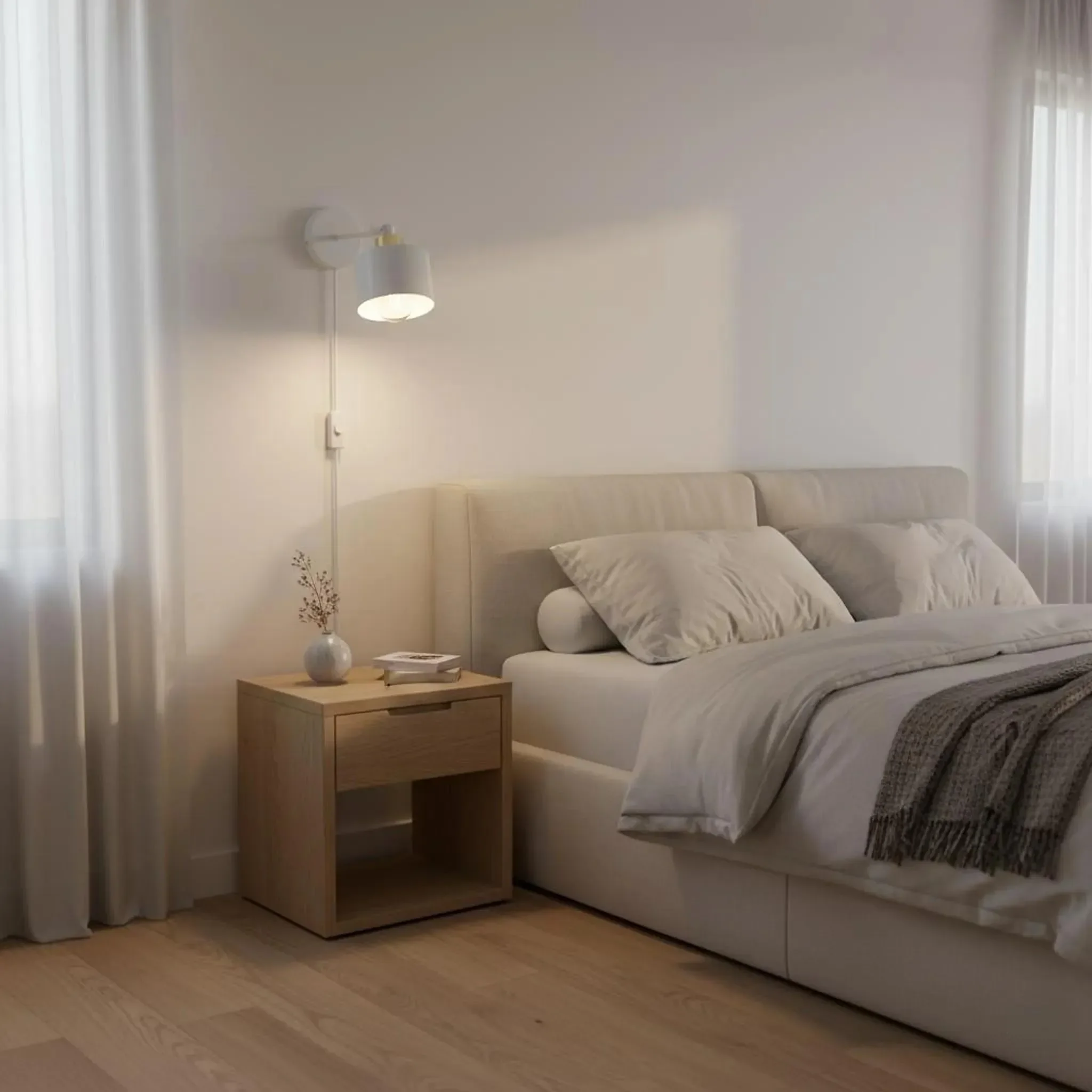 Dank des integrierten 1,5 m langen Kabels mit Schalter und Stecker ist keine feste Installation nötig – einfach einstecken und genießen. Die Lampe ist mit allen E27 LED-Leuchtmitteln bis 35 W kompatibel (nicht enthalten) und bietet effiziente Beleuchtung in elegantem Look.