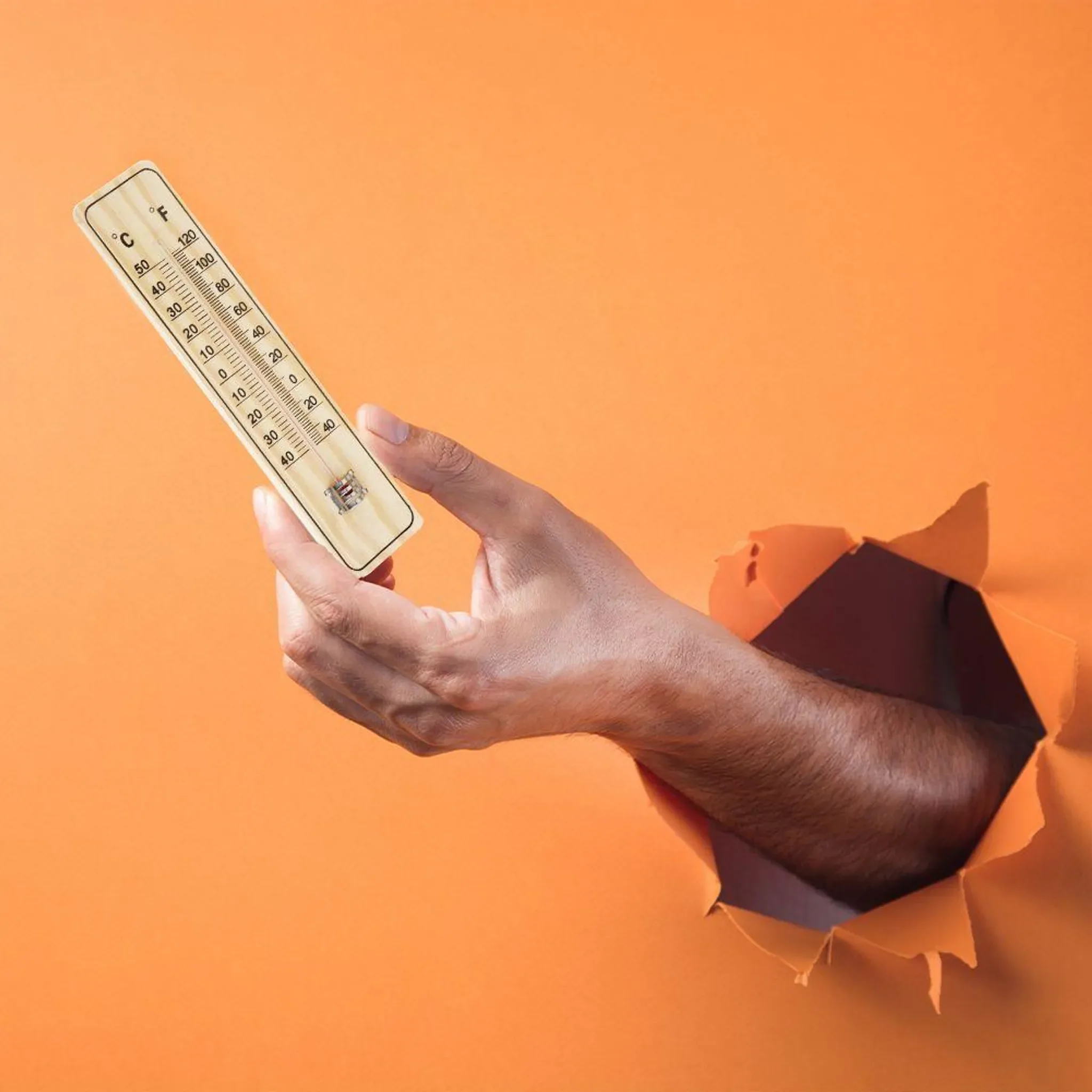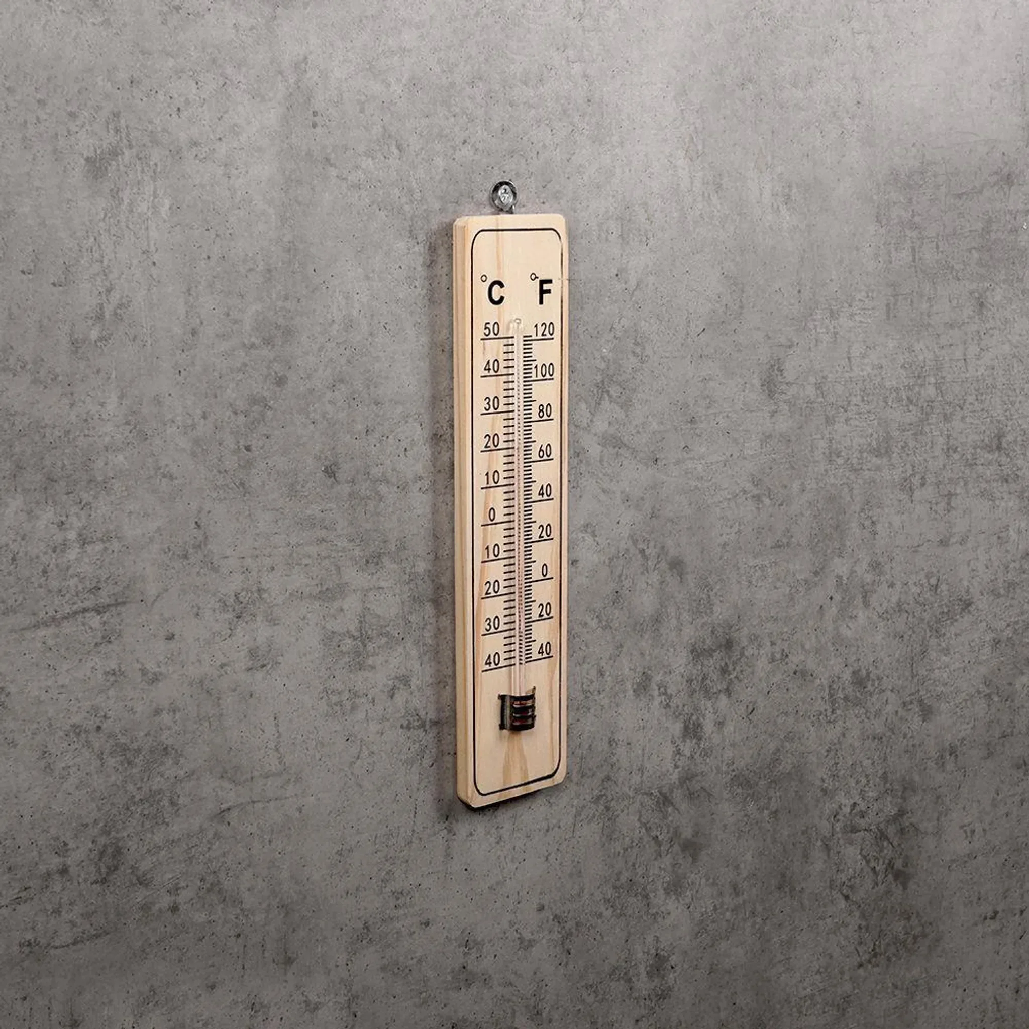 Klassisches Holz-Thermometer für Innen- und Außenbereich – robust, zeitlos und leicht abzulesen