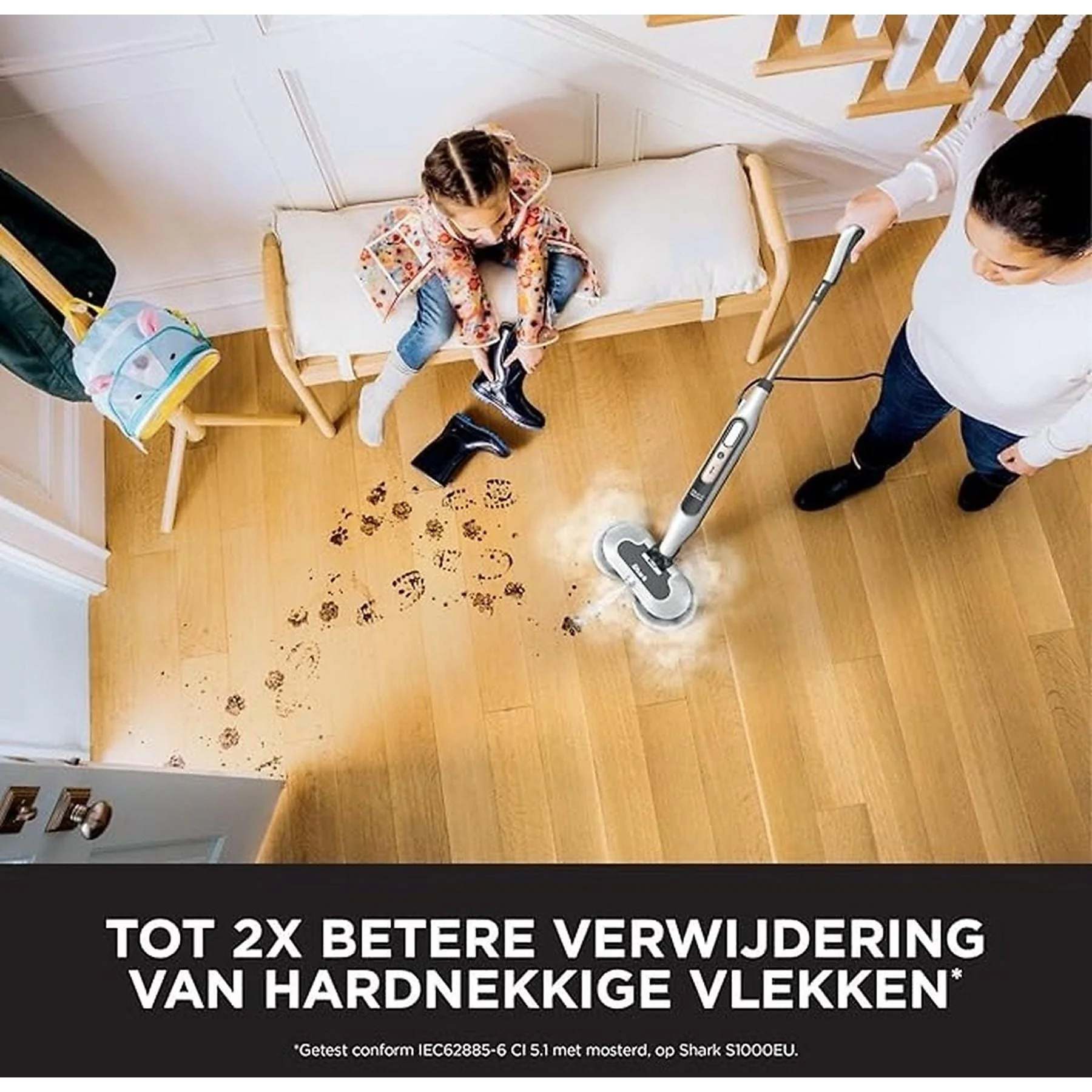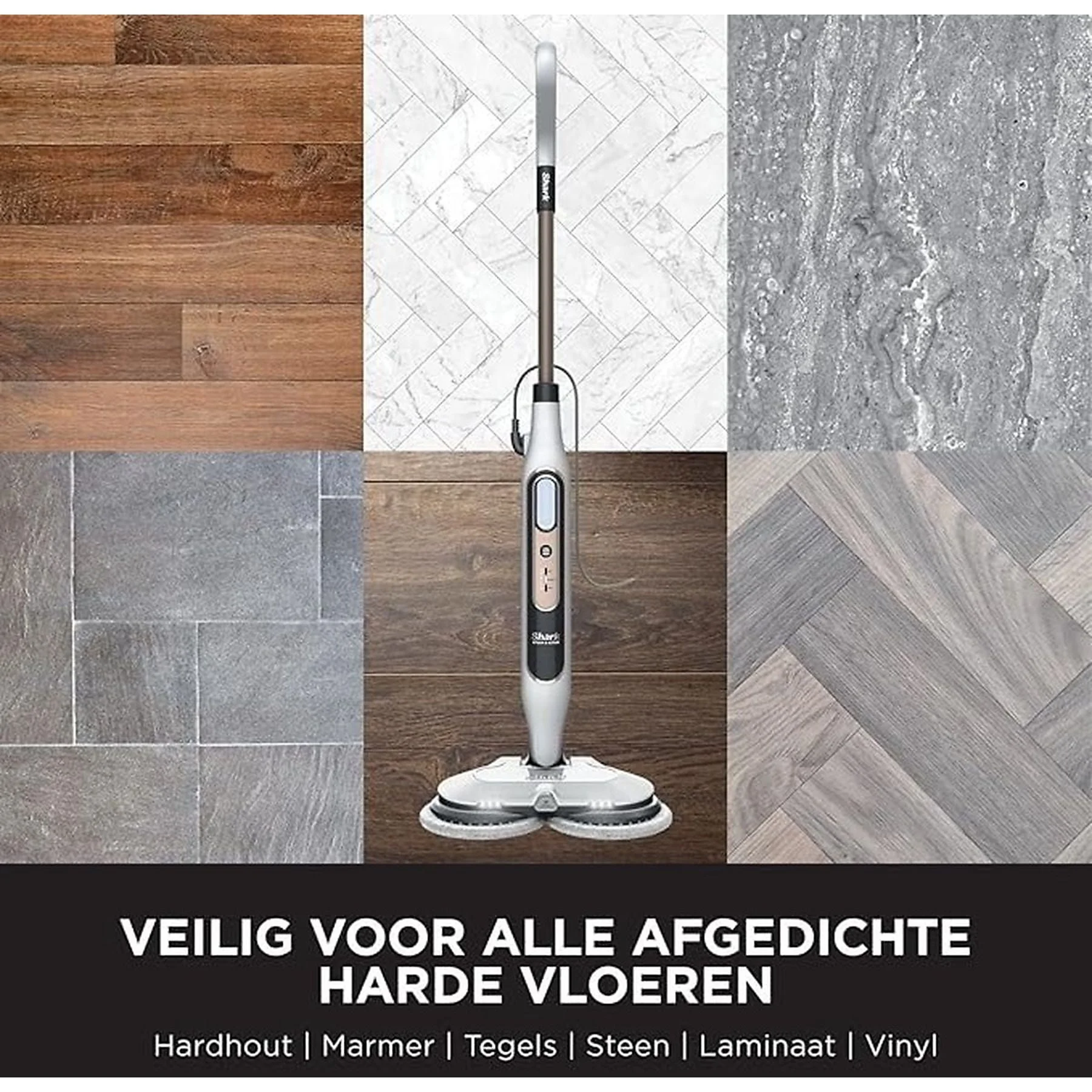 Der Shark Steam & Scrub S8201EU kombiniert leistungsstarken Dampf mit sanftem Schrubben, um versiegelte Hartböden gründlich zu reinigen und zu desinfizieren – ganz ohne Chemikalien. Zwei rotierende Pads arbeiten mit 150 Umdrehungen pro Minute, während gezielte Dampfimpulse hartnäckige Verschmutzungen lösen.