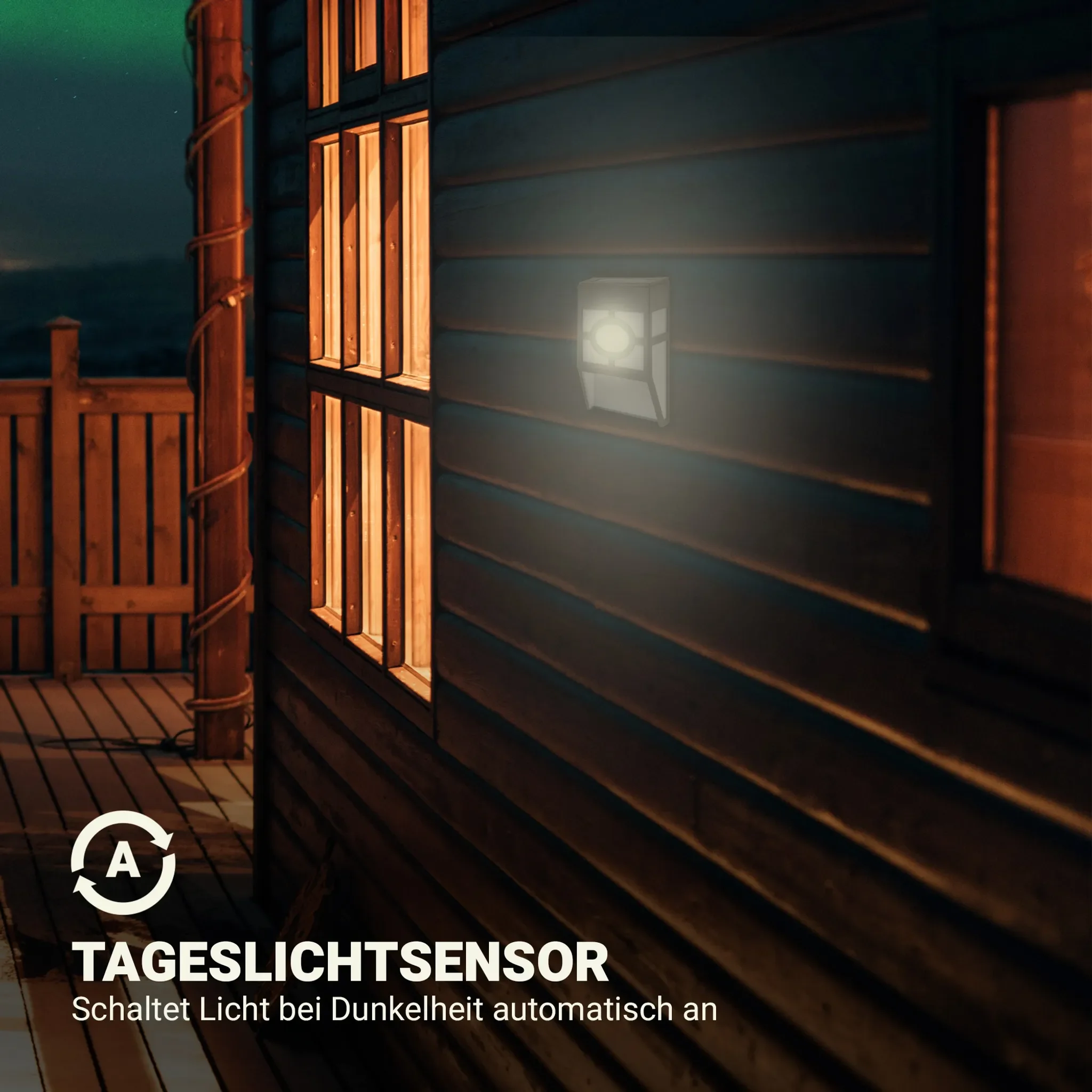 Witterungsbeständiges LED-Solarlicht für Garten, Zaun und Terrasse • mit Tageslichtsensor und integriertem Akku