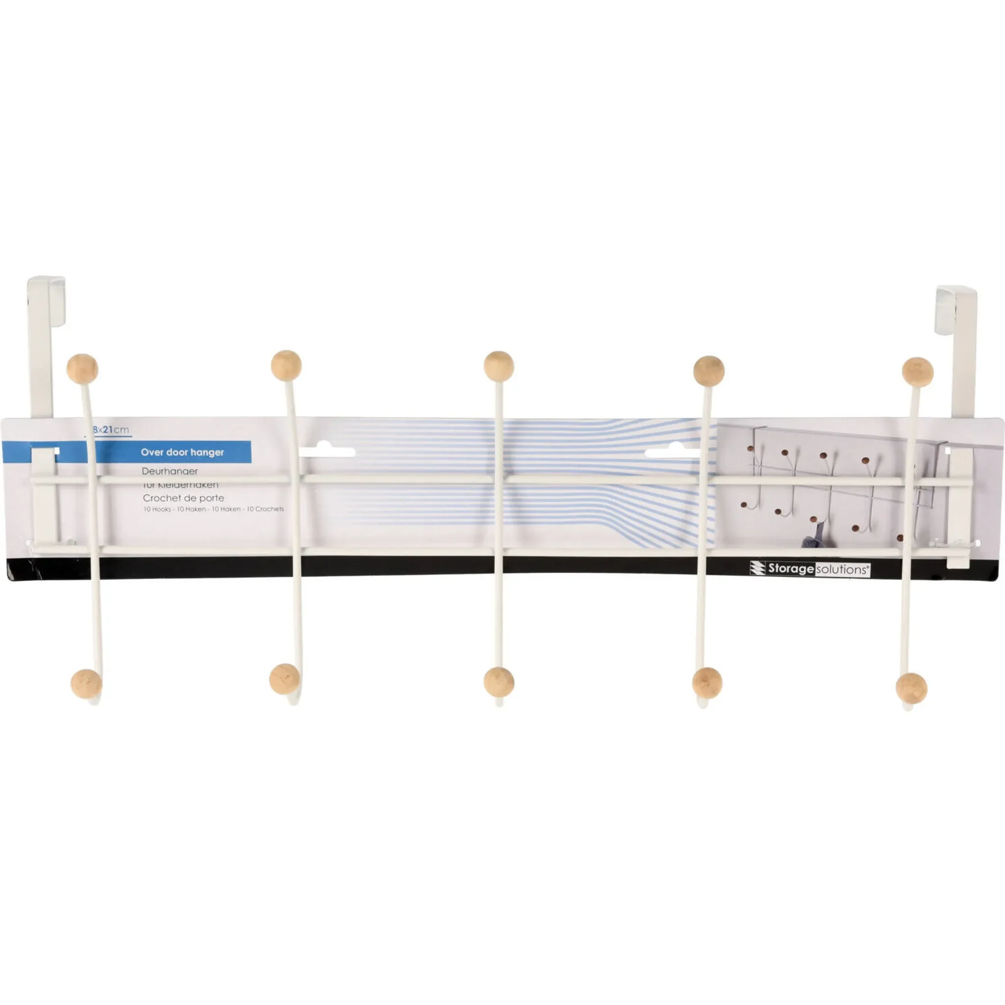 Produktinformationen "Türhänger mit 10 Haken – Weißes Metall & Holzknöpfe, 48×21×12 cm"